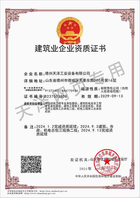 德州天澤工業(yè)設(shè)備有限公司成立于2003年(前身為德州天元集團天明工業(yè)設(shè)備安裝公司),經(jīng)過20多年的發(fā)展,現(xiàn)成長為擁有職工600余人,各類專業(yè)技術(shù)人員近300余人,年生產(chǎn)能力兩億元以上,以建筑機電安裝工程、消防設(shè)施安裝工程施工為主,集建筑工程施工、市政工程施工、建筑智能化工程施工、園林綠化工程施工、工程管理服務(wù)、物業(yè)管理、電氣機械設(shè)備銷售等多元化經(jīng)營于一體的綜合型企業(yè)。2005年,企業(yè)按照國際標準建立的質(zhì)量管理體系,通過了ISO質(zhì)量管理體系認證、環(huán)境管理體系認證、職業(yè)健康安全管理體系認證。施工工程遍布山東、河北、四川、江蘇等地,最具代表性的工程有:山東省德州市百腦匯資訊廣場機電安裝工程、德州經(jīng)濟開發(fā)區(qū)天元大廈機電安裝工程、陵城區(qū)人民醫(yī)院機電安裝工程、德州金魯班大廈機電安裝工程、河北故城金辰小區(qū)機電安裝工程、北川地震災后援建工程等。多年來,公司始終堅持“以人為本,建精品工程,創(chuàng)行業(yè)品牌”的經(jīng)營理念,先后榮獲省(市)級泰山杯、天府杯、魯安杯等獎項,申報各種功法、多項專利。